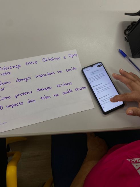 Entre as iniciativas, destacaram-se rodas de conversa, palestras e oficinas educativas sobre higiene ocular, proteção contra radiação solar, prevenção de acidentes domésticos e ocupacionais que afetam a visão, além de orientações sobre doenças como catarata, glaucoma e degeneração macular. Também foram realizadas testagens de acuidade visual, possibilitando identificar sinais iniciais de problemas oftalmológicos e orientar sobre a busca por acompanhamento especializado.
