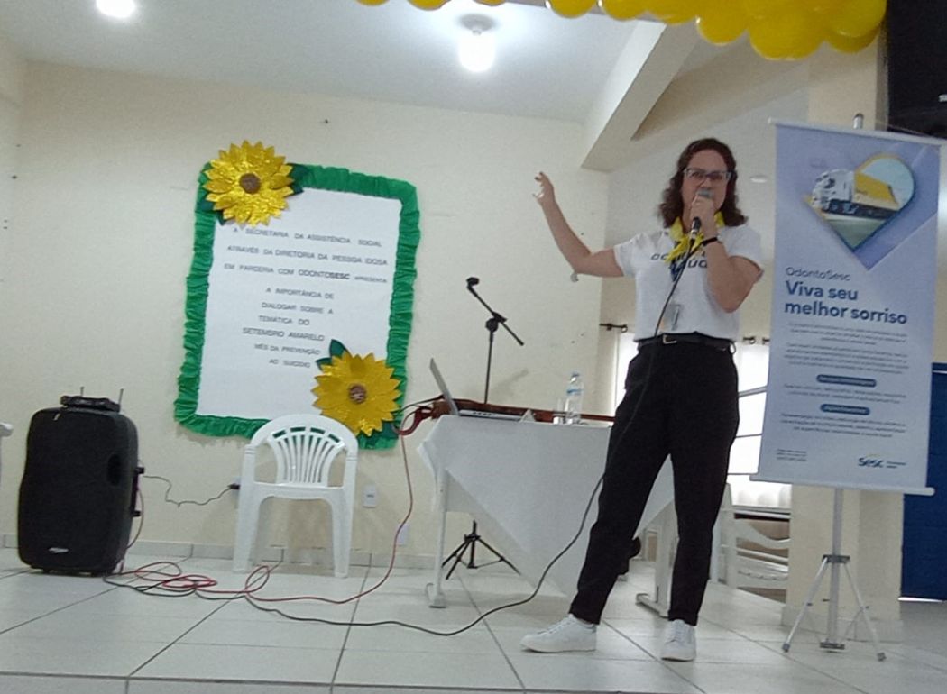 O OdontoSesc, em parceria com a Secretaria de Assistência Social de Porto Belo, realizou ações de Educação em Saúde, abordando o tema do Setembro Amarelo. As atividades ocorreram no Centro de Convivência Antônio Airoso e foram voltadas para pessoas idosas da comunidade.