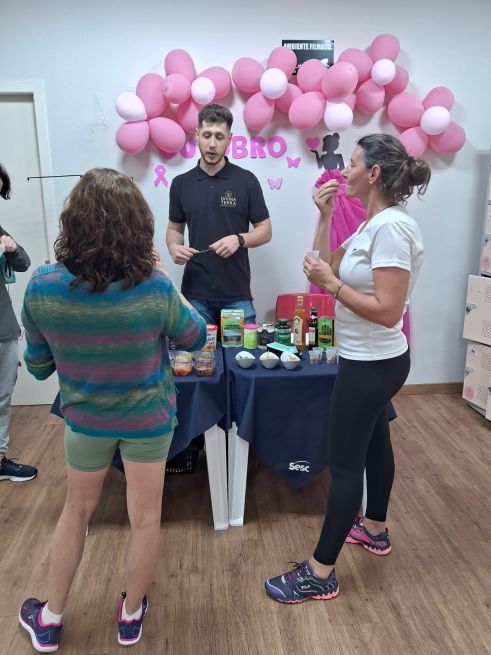 O Outubro no Sesc-SC teve a colaboração de equipes de Educação em Saúde, lazer, Unidade Móvel de atendimento, Mesa Brasil, entre outros. Além da participação de equipes de saúde dos municípios, Rede Feminina de Combate ao Câncer e empresas parceiros.