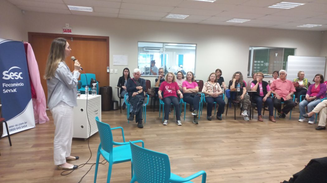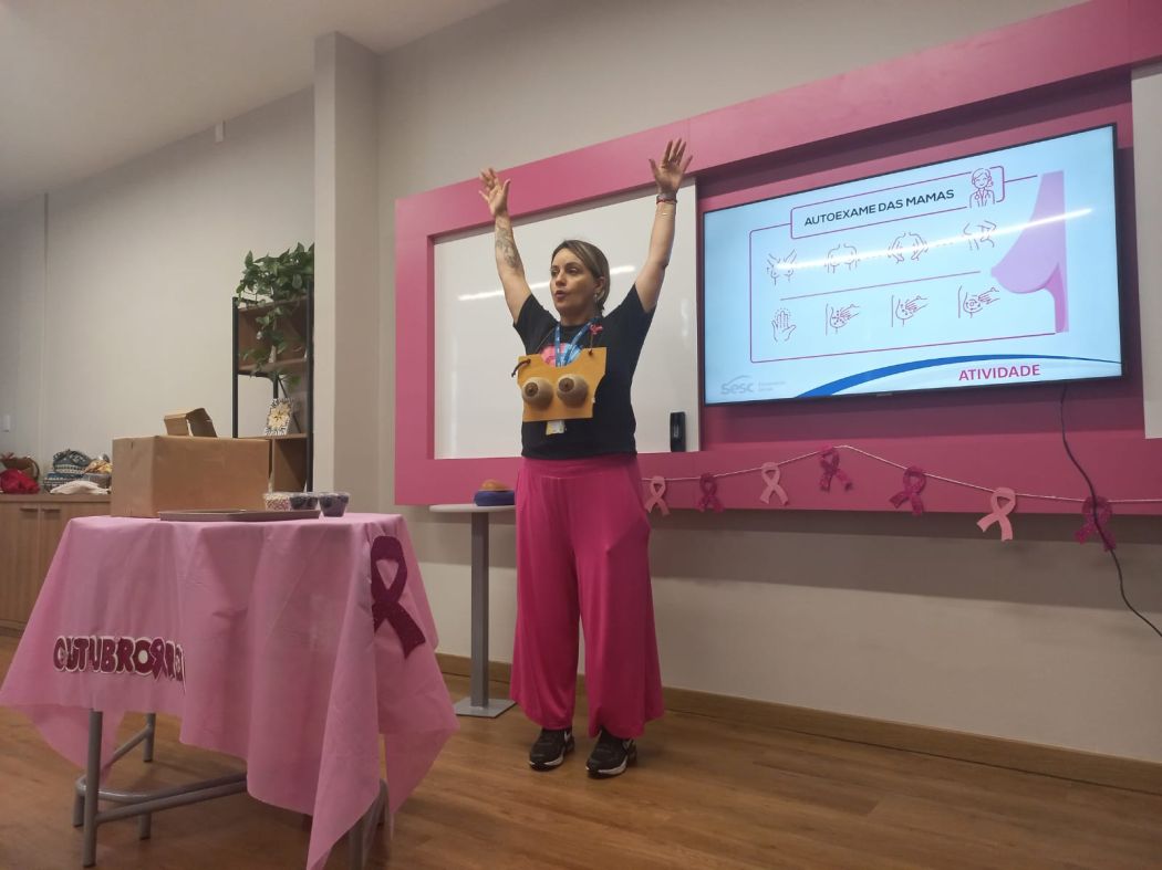 O mês de outubro foi marcado por atividades de conscientização, combate e prevenção do Câncer de Mama e do Colo do Útero. Ao todo, foram 73 ações realizadas no Sesc-SC, nas Unidades Móveis do Sesc Saúde Mulher e no Mesa Brasil.