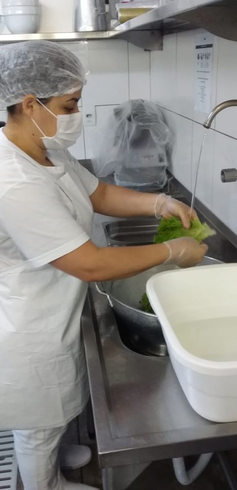 “Antes da reabertura dos estabelecimentos, elaboramos um plano de ação específico para garantir a produção de refeições seguras e evitar a disseminação do novo Coronavírus, e realizamos duas capacitações virtuais com as equipes técnicas e operacionais”, explica a gerente de Saúde e Assistência do Sesc-SC, Jéssica da Luz Prereira Pucci. No treinamento com os manipuladores de todo o Estado, foram reforçados os procedimentos recomendados nas Boas Práticas de Fabricação de Alimentos e também as medidas específicas para o período de pandemia, enfatizando os requisitos de higiene pessoal e medidas de prevenção previstas nas legislações vigentes.