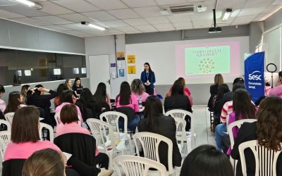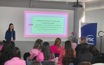 Entre os destaques, esteve o Café Rosa, em Chapecó, que reuniu 47 participantes do Supermercado Celeiro para uma palestra conduzida pela psicóloga clínica do Sesc Chapecó abordando práticas de autocuidado e saúde emocional. A programação incluiu ainda orientações de saúde bucal, divulgação dos serviços de saúde do Sesc, aferição de pressão arterial e teste de glicemia, além de um espaço dedicado a informações sobre as atividades da instituição.