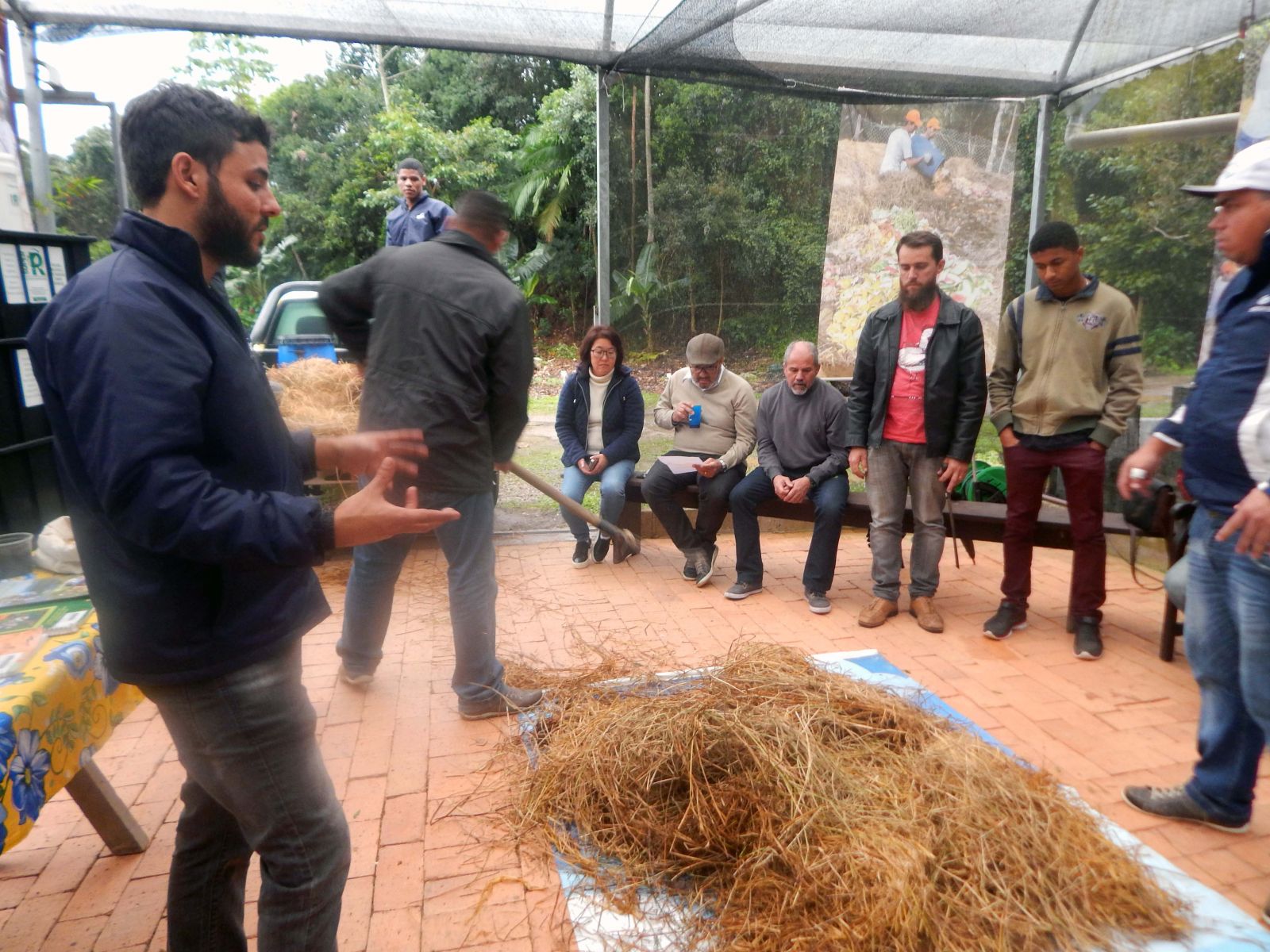 Ao final da oficina os participantes visitaram ao pátio de compostagem do Hotel, que recebe semanalmente em média uma tonelada de resíduos orgânicos. Desta forma, deixa de ser um problema para outro local e fecha o ciclo do alimento, retornando ao solo para produzir novos alimentos.