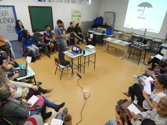O primeiro dia foi destinado ao conteúdo teórico que abordou o panorama legal (federal, estadual e municipal) a respeito das obrigações de separação e destino dos resíduos, as diferentes opções para o tratamento da fração orgânica, até chegar ao método UFSC de compostagem, método utilizado por unidades do Sesc catarinense. Foram demonstrados alguns cases de projetos de Florianópolis e região que ilustram diferentes escalas possíveis de gerenciamento de resíduos orgânicos que o método permite: domiciliar, escolar, comunitária, institucional/empresarial e municipal. A apresentação visual contou com uma referência bibliográfica principal a cartilha “Manual de orientação: Compostagem Doméstica, Comunitária e Institucional de Resíduos Orgânicos”, uma publicação fruto da parceria entre o Sesc, Ministério do Meio Ambiente e Cepagro, importantes parceiros na difusão desse método e pode ser acessada pelo endereço: http://www.mma.gov.br/images/arquivo/80058/Compostagem-ManualOrientacao_MMA_2017-06-20.pdf